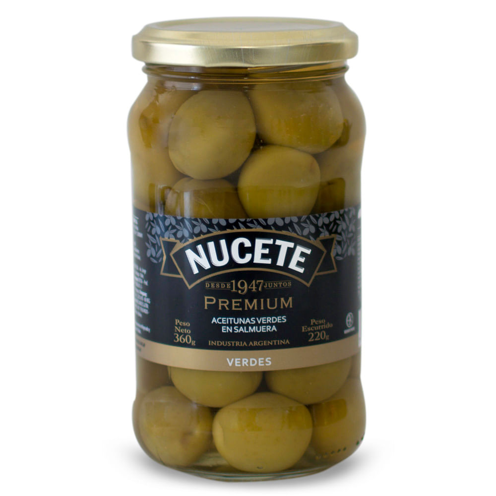 ACEITUNAS ENTERAS PREMIUM 220GR NUCETE VIDRIO