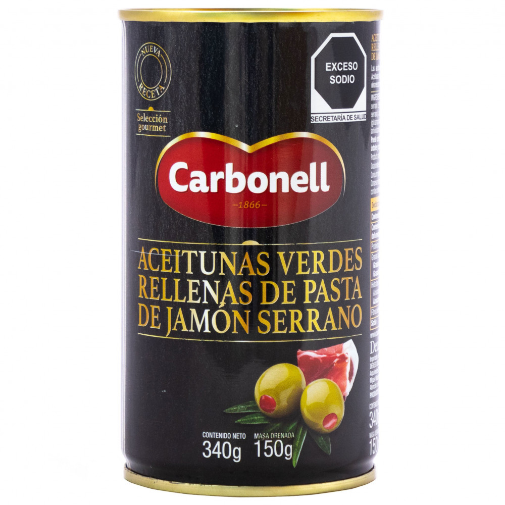 ACEITUNAS C/ PASTA JAMON SERRANO CARBONELL LATA 340GR